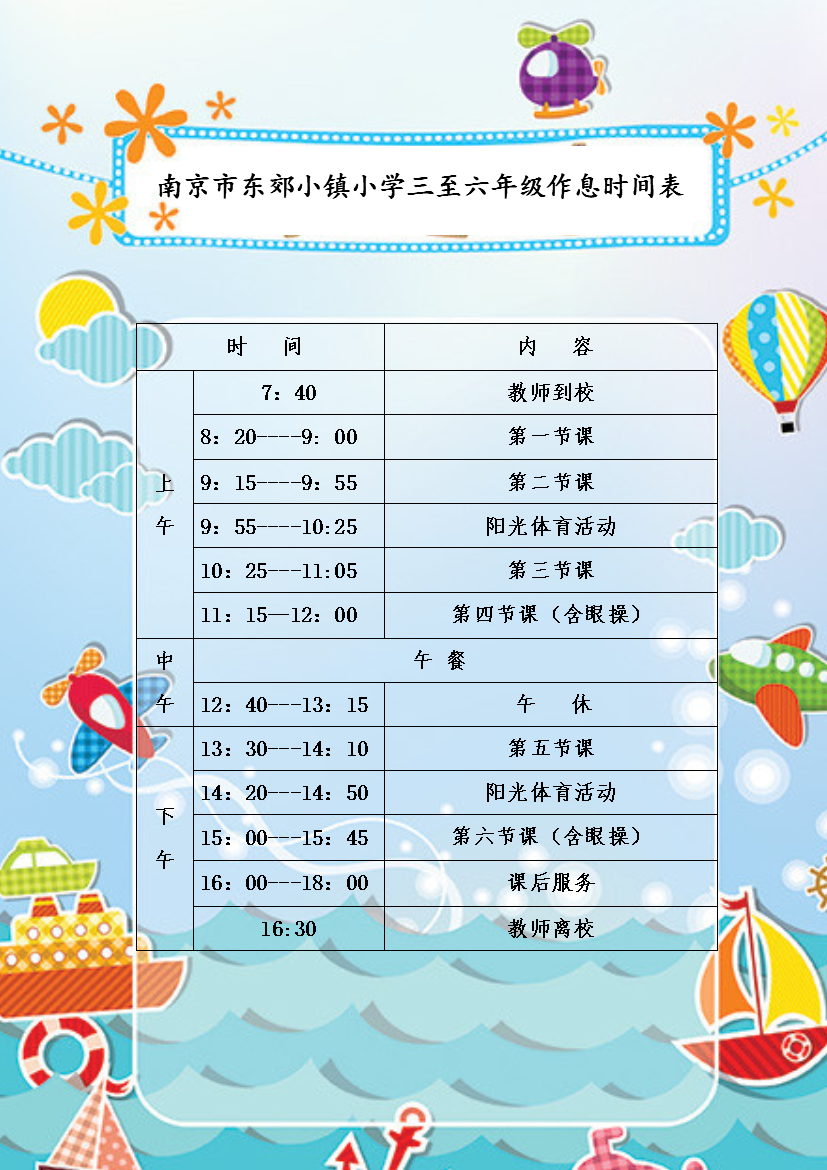 南京市东郊小镇小学2025-2026学年第一学期作息时间表